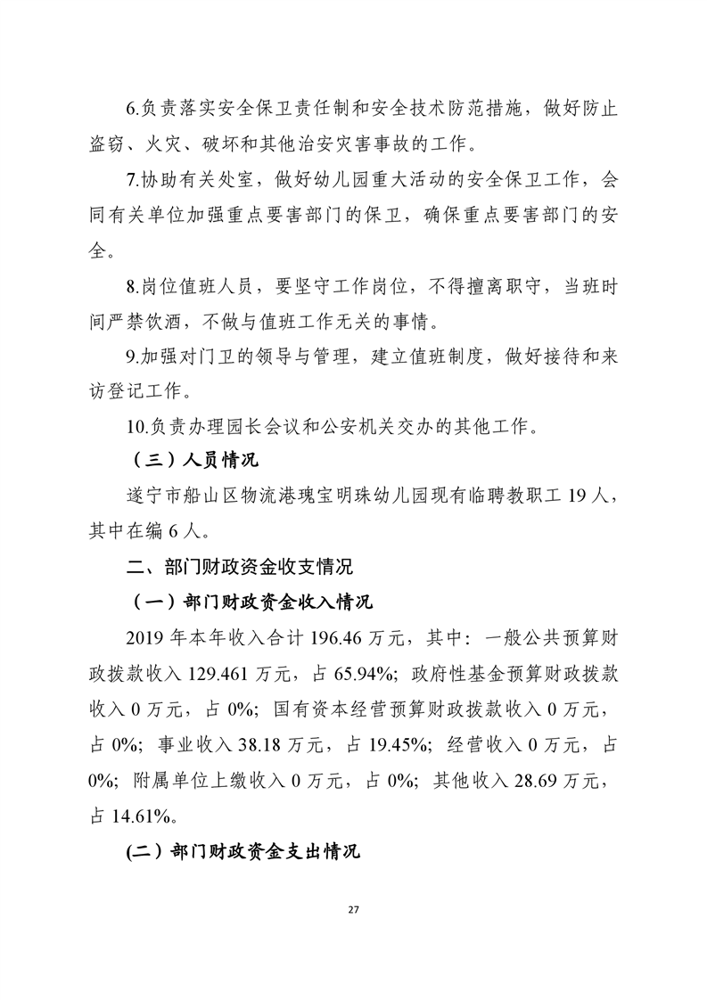 2019年度四川省遂宁市船山区物流港瑰宝明珠幼儿园 决算公开编制说明