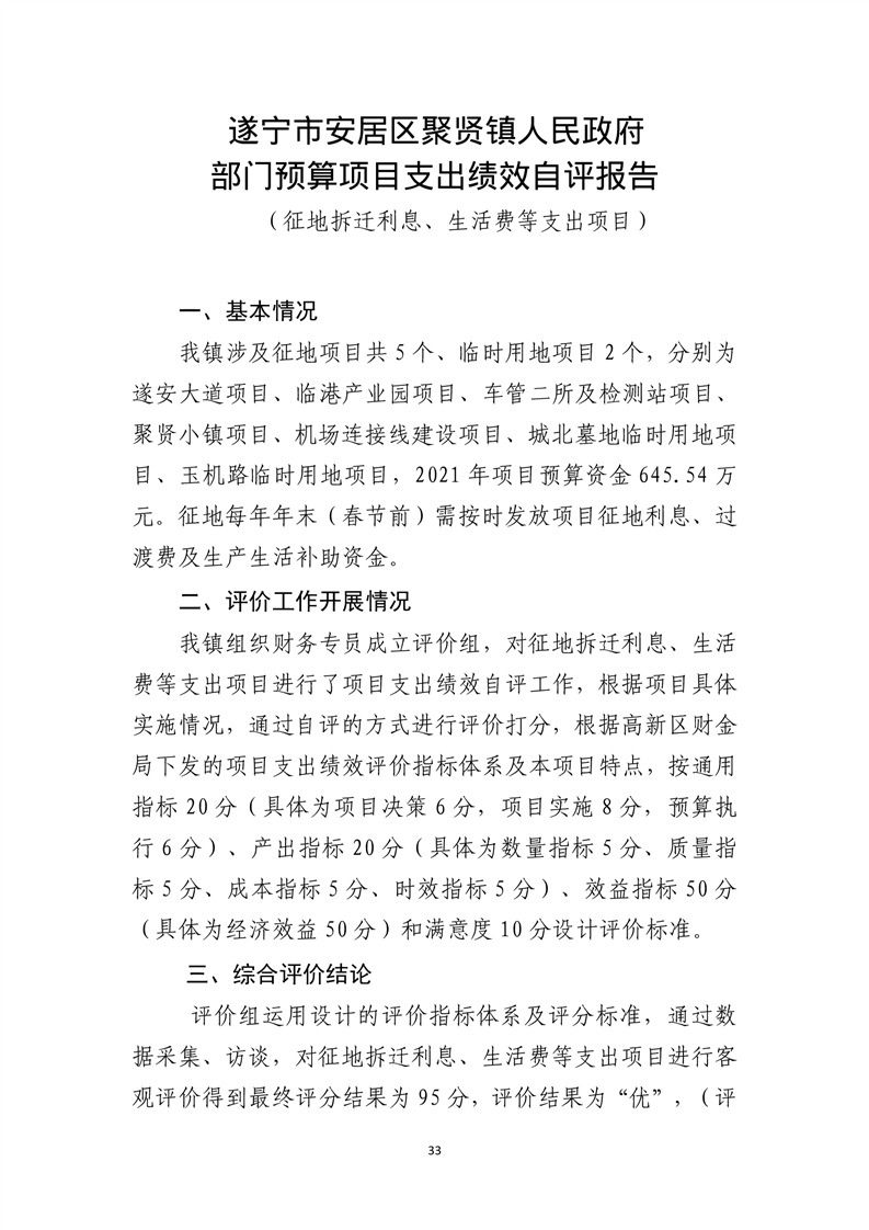 2021年度遂宁市安居区聚贤镇人民政府决算