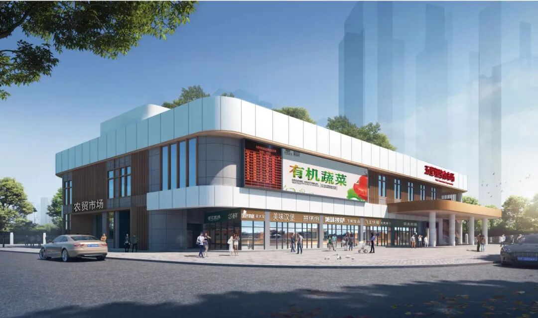 在外观与环境打造上,摒弃传统农贸市场“脏乱差”印象,采用简约大气的建筑风格,内部重点优化通风采光设计,营造整洁明亮的购物环境,让“逛菜场”成为轻松舒适的生活体验。