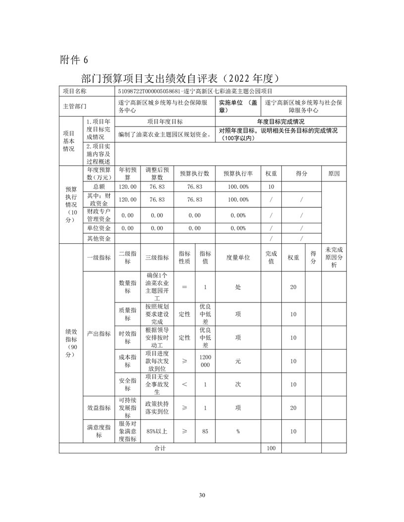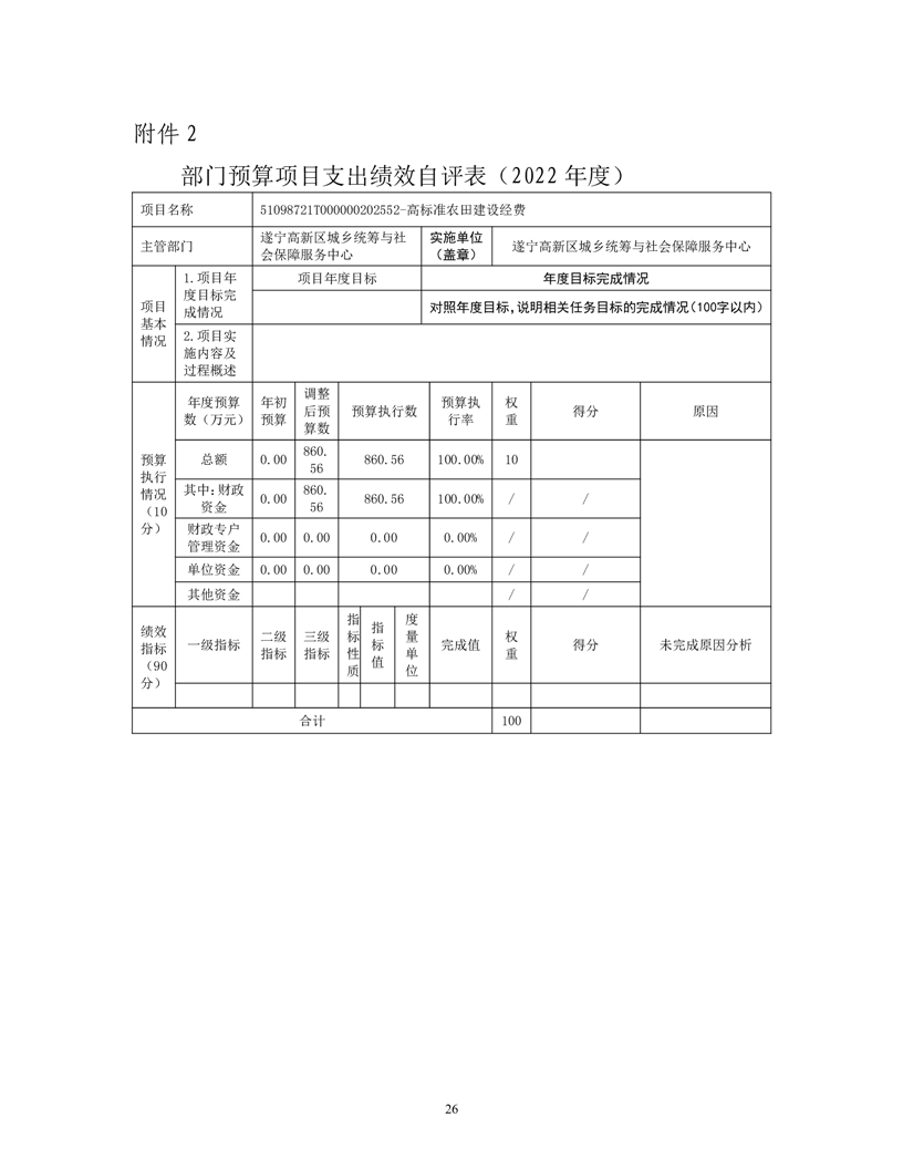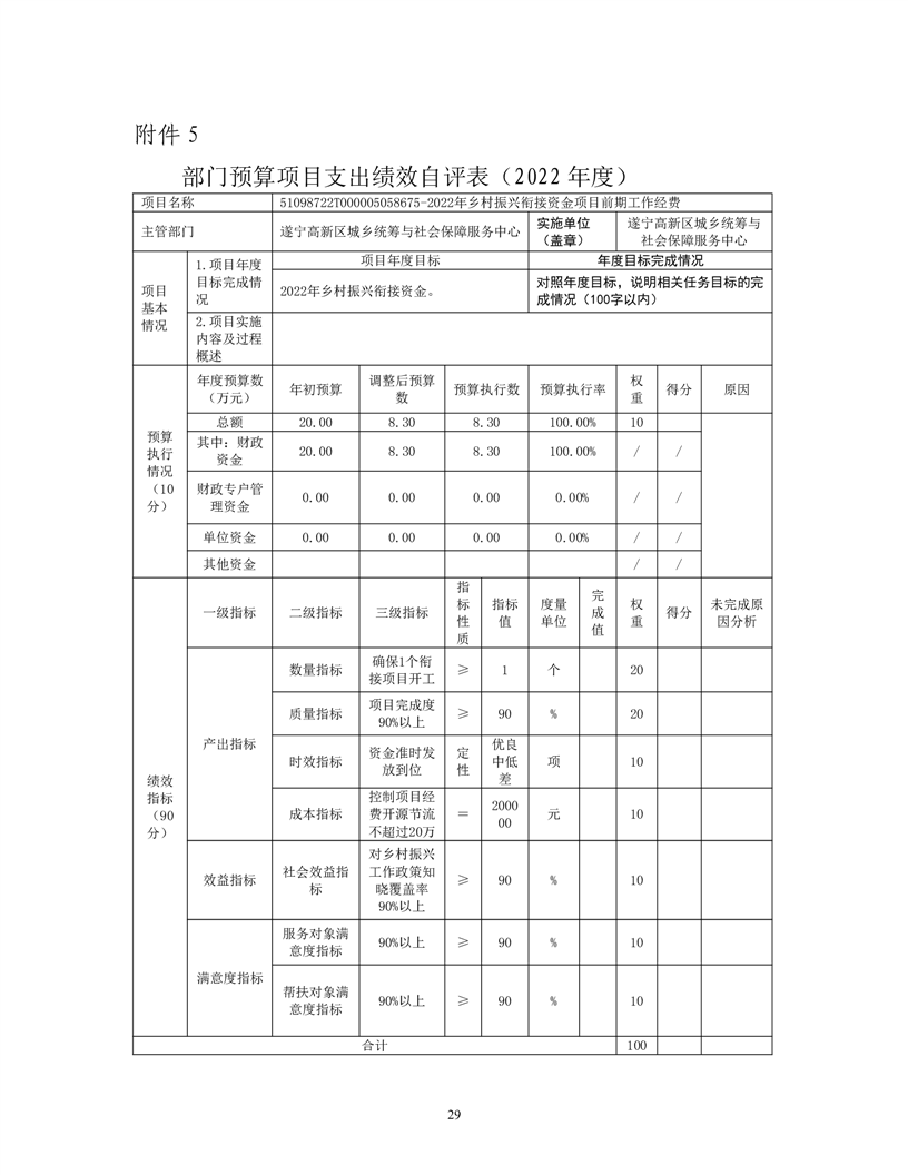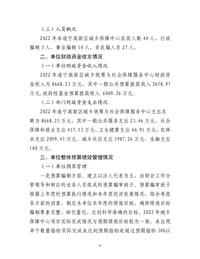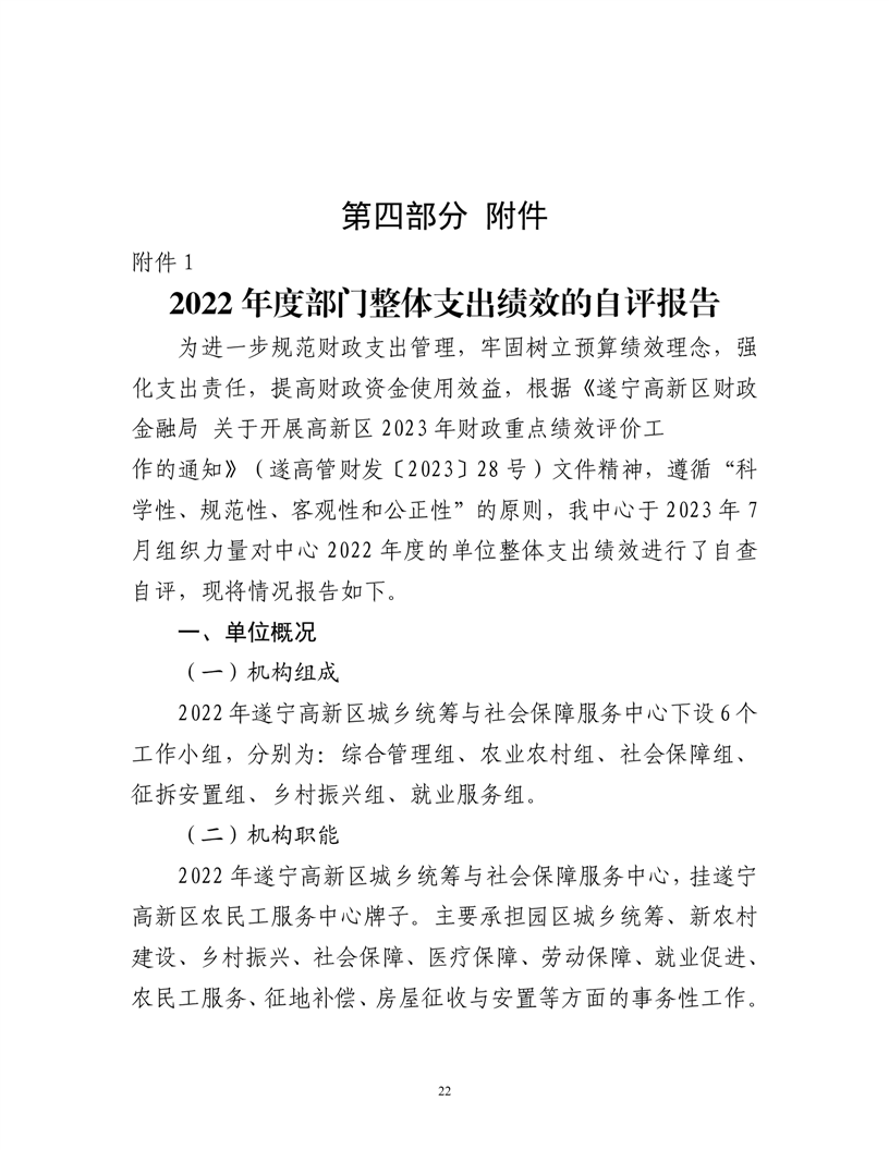 2022年度遂宁高新区城乡统筹与社会保障服务中心决算