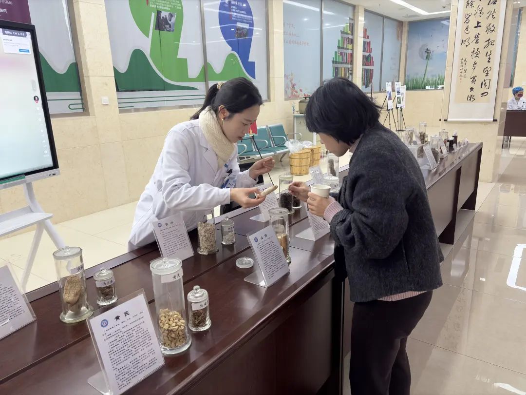 在她身旁,也不断有人前往体验中药浴足,医师们讲解着穴位按摩手法,并将热腾“出炉”的艾草葱油饼、养生茶等中药食疗分发给现场市民,满满的都是烟火气息。丰富多彩的“草木香”结合“岐黄术”,为市民们带来了新年的健康“第一课”。