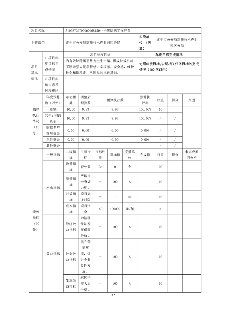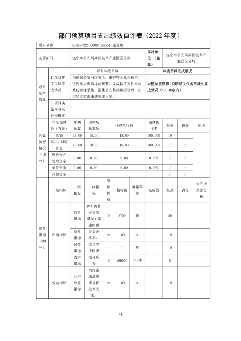 2022年度遂宁市公安局高新技术产业园区分局决算