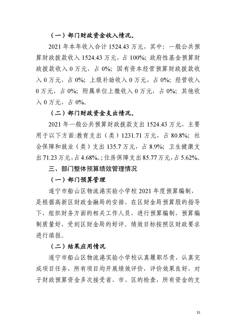2021年度四川省遂宁市船山区物流港实验小学校部门决算