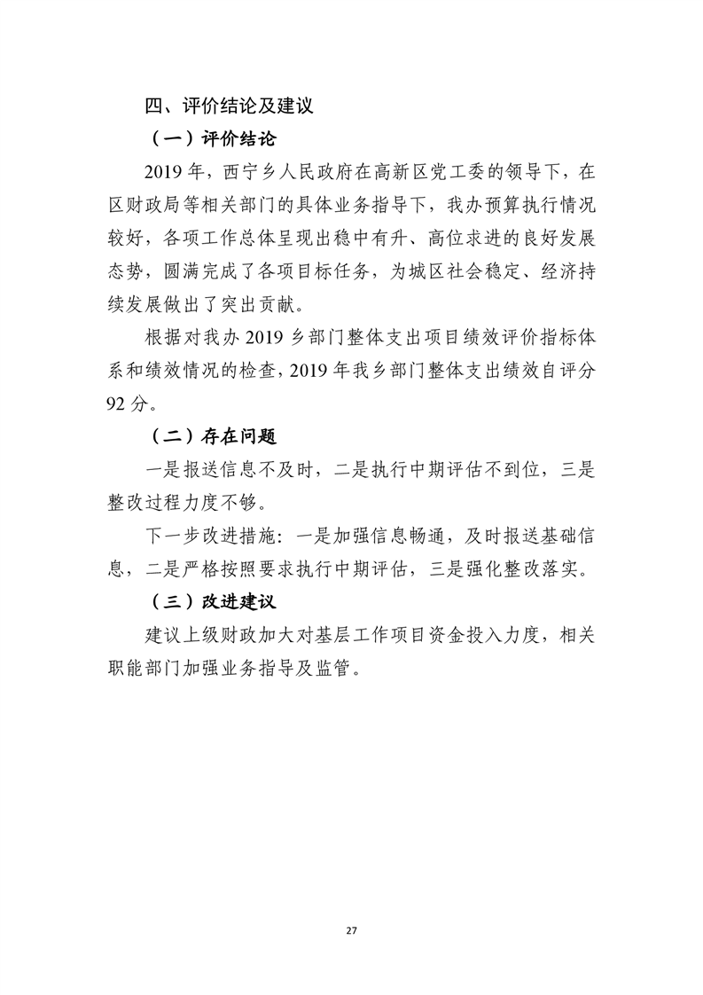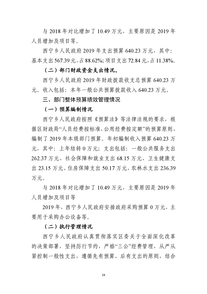 2019年度遂宁市高新区西宁乡人民政府部门决算
