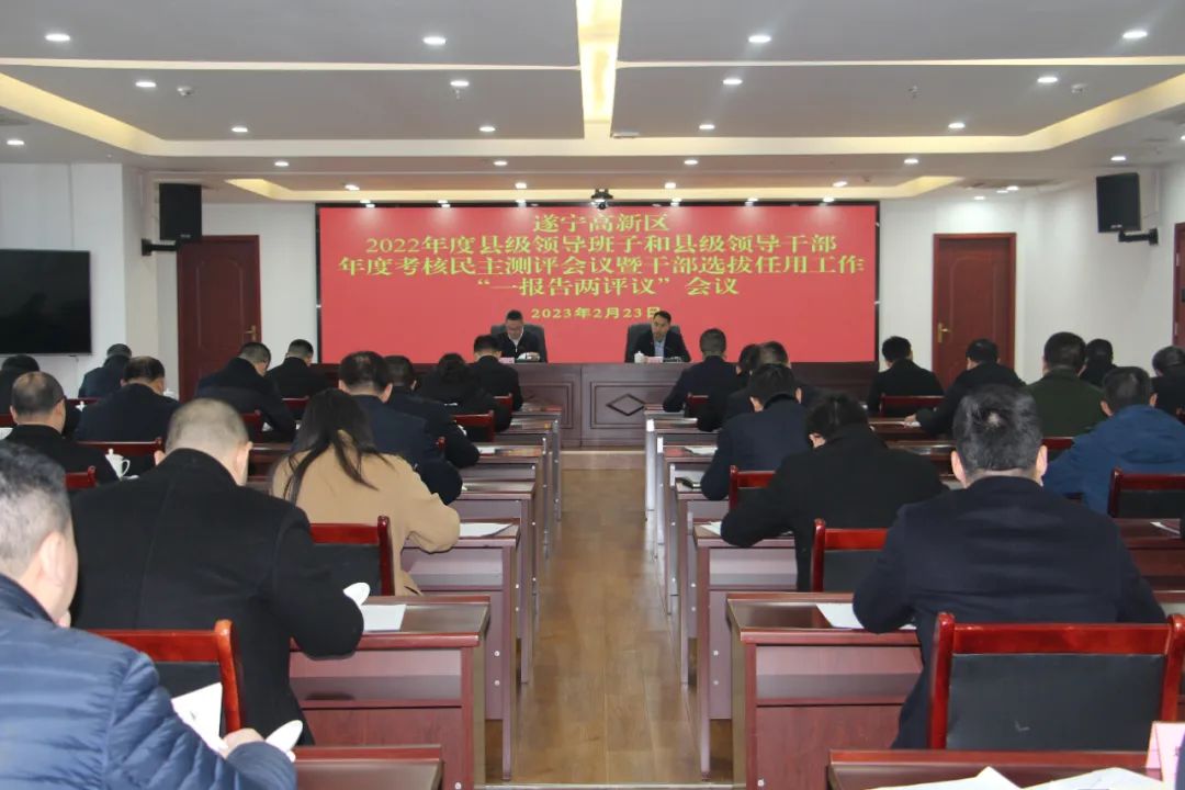 2月23日,遂宁高新区2022年度县级领导班子和县级领导干部年度考核民主测评会议暨干部选拔任用工作“一报告两评议”会议召开。遂宁高新区党工委副书记、管委会主任唐统主持会议。市委组织部部务委员付华润率队开展考核。