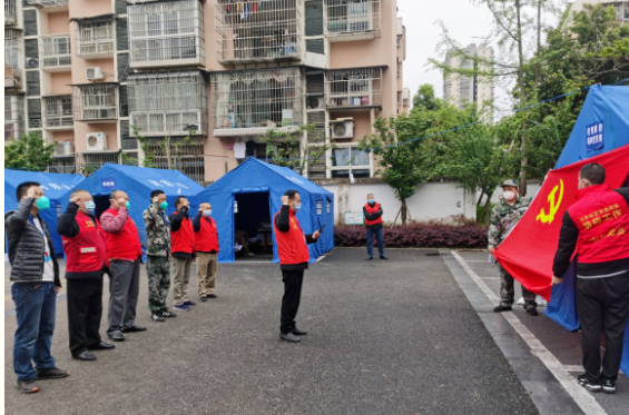 ▲市河东新区党工委第一时间在战“疫”一线吹响“红色集结号”。
