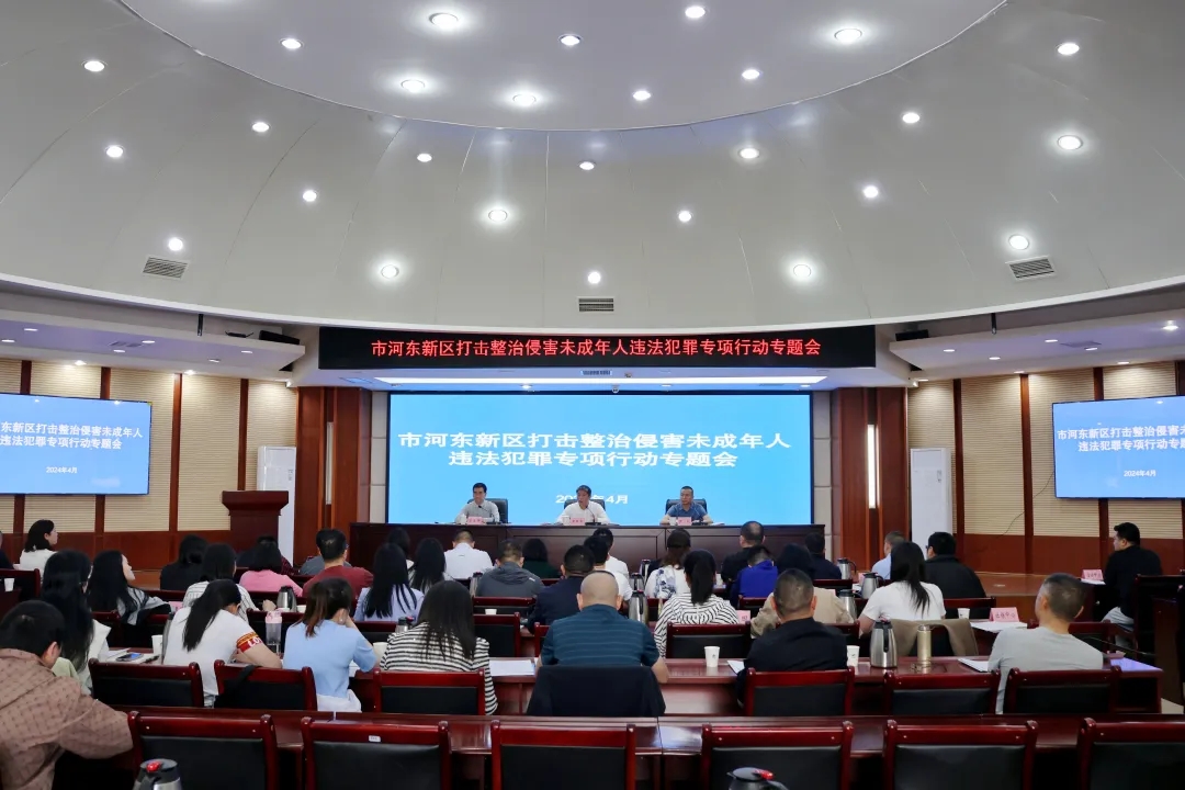 近日,市河东新区召开打击整治侵害未成年人违法犯罪专题会,深入学习习近平总书记关于未成年人保护工作重要指示批示精神,落实中省市未成年人保护工作相关安排部署,分析新区形势,安排部署下一步重点工作,全方位保障未成年人的合法权益,呵护新区未成年人健康成长。市河东新区党工委副书记唐钰玺出席会议并讲话,市河东新区管委会副主任、公安分局局长梁毅参加会议。