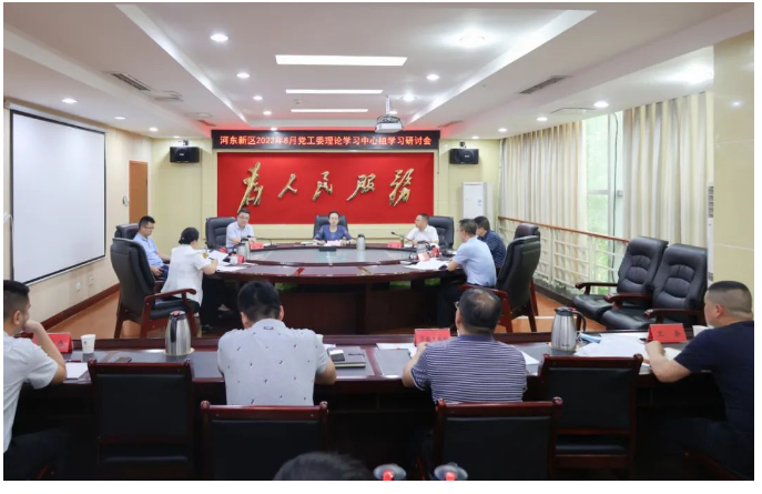 8月29日,市河东新区党工委书记夏海荣主持召开党工委理论学习中心组集中学习研讨会,专题学习研讨《习近平谈治国理政》第四卷、习近平法治思想、习近平总书记在省部级主要领导干部专题研讨班上的重要讲话精神。市河东新区党工委副书记、管委会主任杨东等党工委理论学习中心组在家学习成员参加会议。