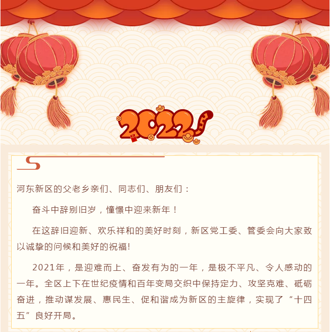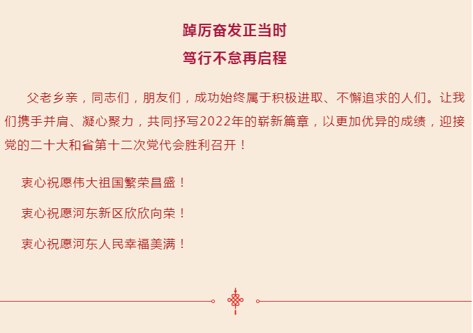 踔厉奋发正当时 笃行不怠再启程——市河东新区2022年新春贺词