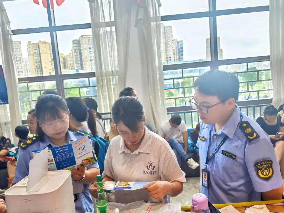 检查中,执法人员一是仔细查看考级机构的资质、考前备案、考官资质、考级信息公示、收费标准等情况,确保考级活动公开透明;二是对考级的相关政策法规进行现场宣讲,要求艺术考级机构严格按照《社会艺术水平考级管理办法》规定开展考级活动,并向在场的工作人员发放文旅行业《未成年人保护宣传》手册200余本,倡导大家共同保护未成年人身心健康,保障未成年人合法权益;三是重点对考点的场所消防、考级秩序等进行了检查,要求考级机构严格落实安全相关规定,压实安全生产主体责任,做好错峰入场、高温降暑、场所消毒等常态化安全防控措施。