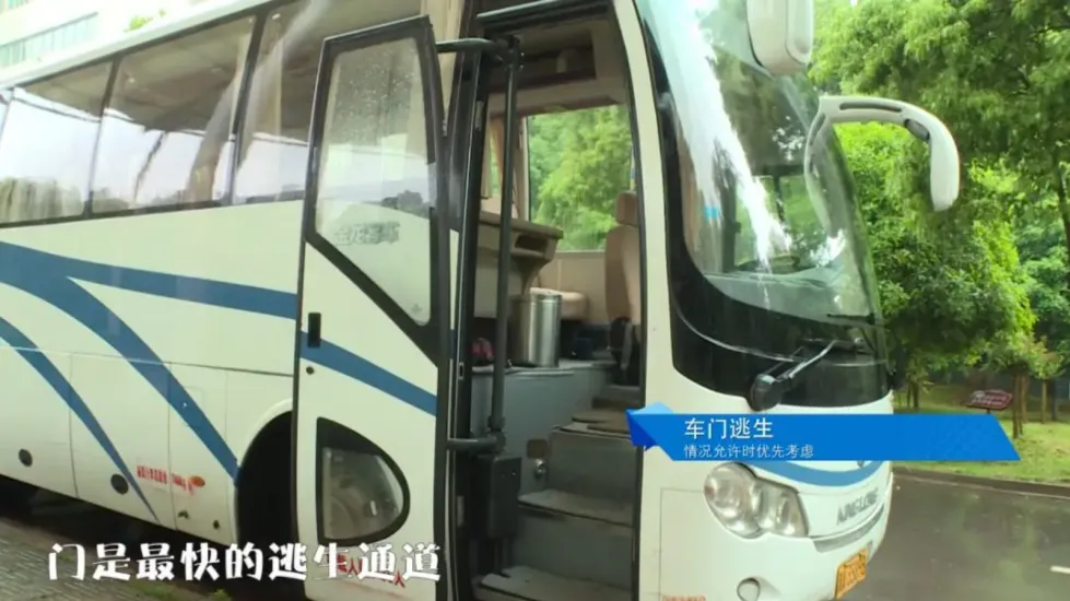 ①车门是最快的逃生通道,因为打开方便,出现意外时司机能第一时间控制车门打开;