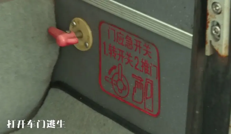 ②起火后,车辆电动门可能会因线路烧毁导致司机对车门控制失效,此时司机、乘客要用应急开关打开车门逃生;