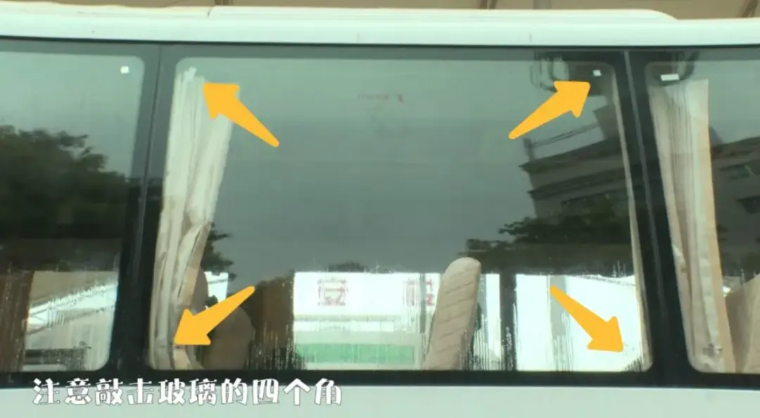 ②大巴车、空调车是密闭车窗,需用安全锤敲击车窗;注意:应敲击四个角,这样更容易敲碎玻璃;