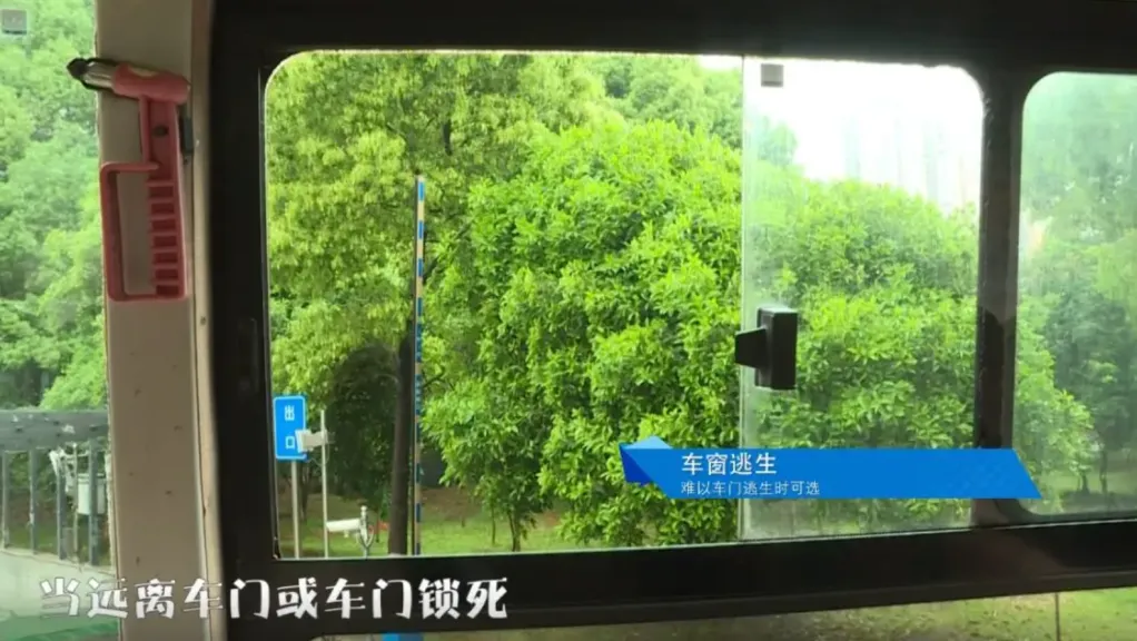 ①车窗可人为推拉打开时,远离车门的人应及时从车窗逃生;