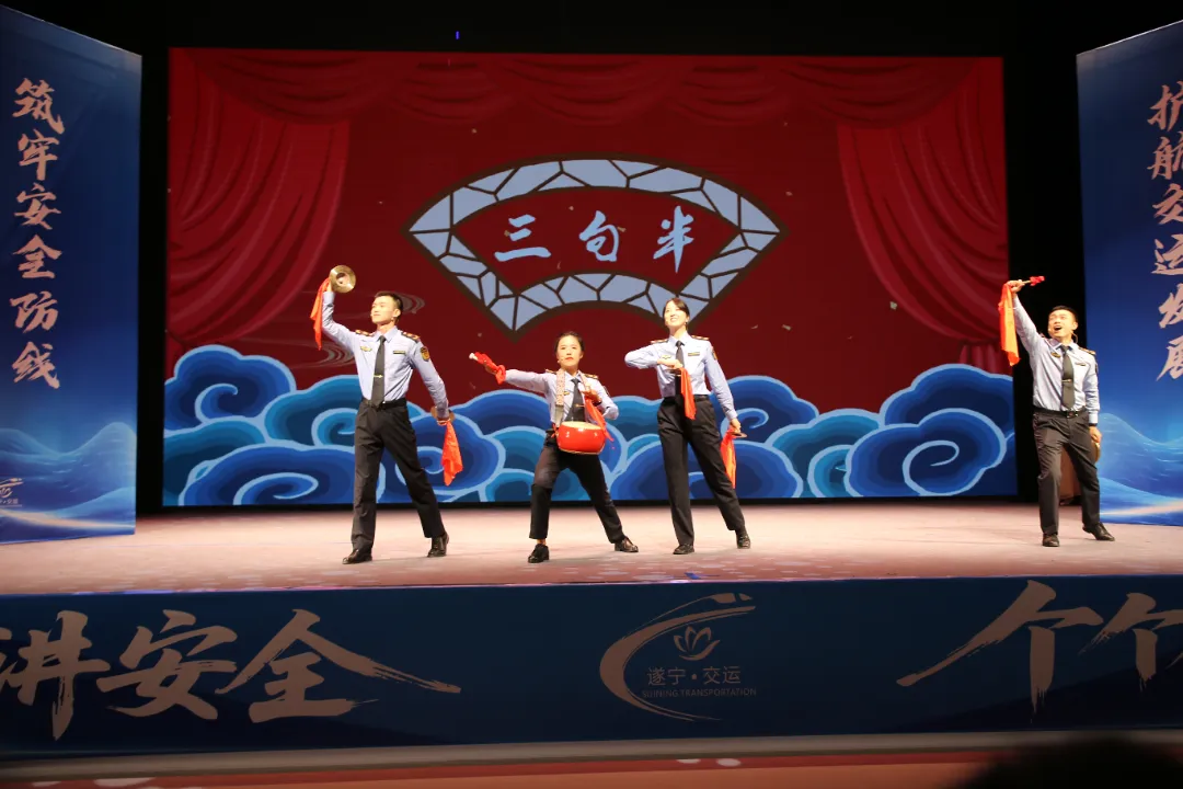 经过激烈角逐,市交通运输综合行政执法支队凭借《安全人人讲,隐患无处藏》斩获一等奖;安居区交运局《运筹帷幄》、市交通运输局机关《交通平安颂》获二等奖;市运输中心《安全运输联盟》、大英县交运局《安全生产三句半》、市公路中心《安全之盾 生命之舟》获三等奖。
