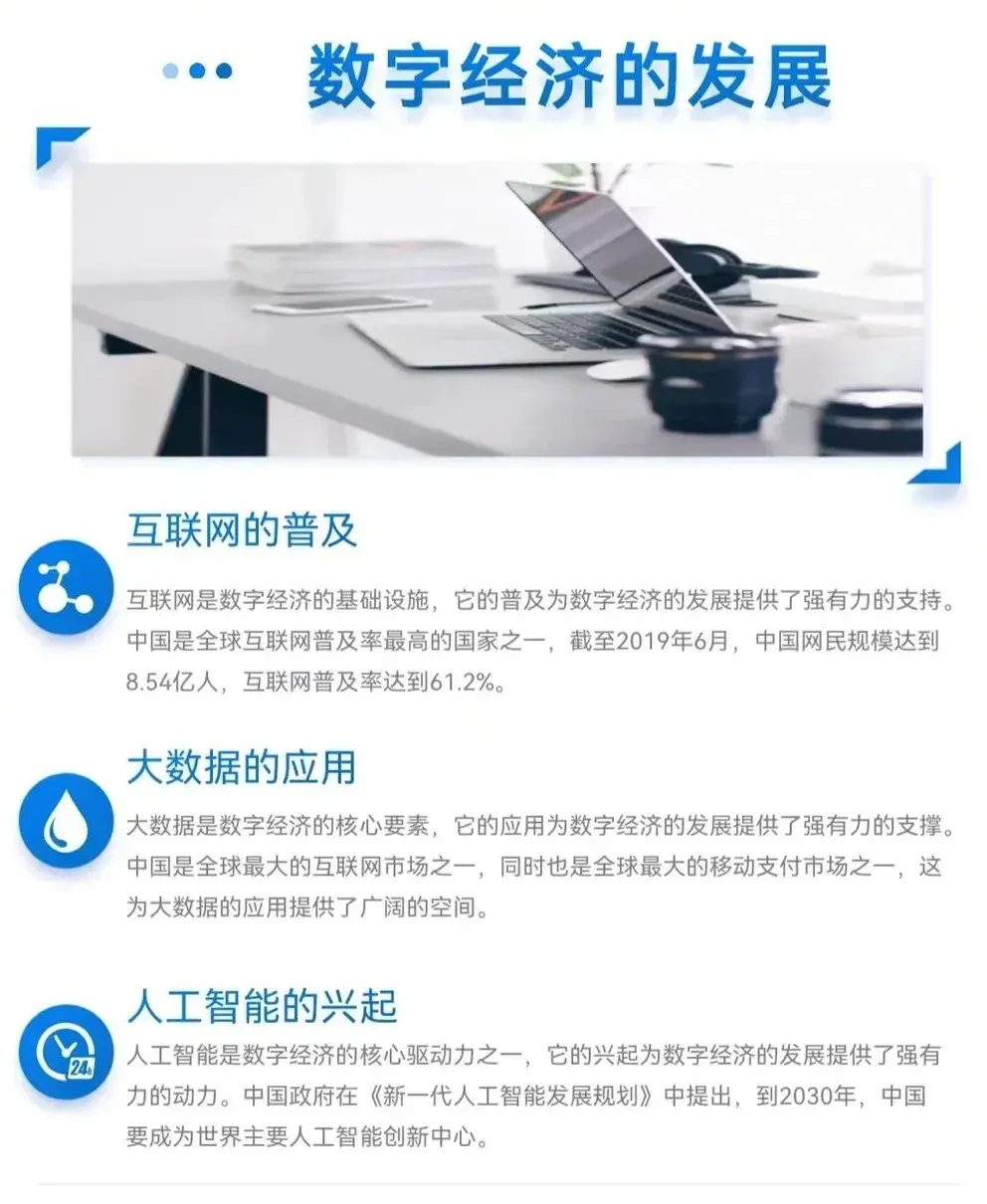 例如,云计算的应用使得企业无需大量投入硬件设备,只需支付一定的服务费用即可享受高效的计算资源。最后,数字经济推动了消费方式的改变,促进了消费市场的繁荣。