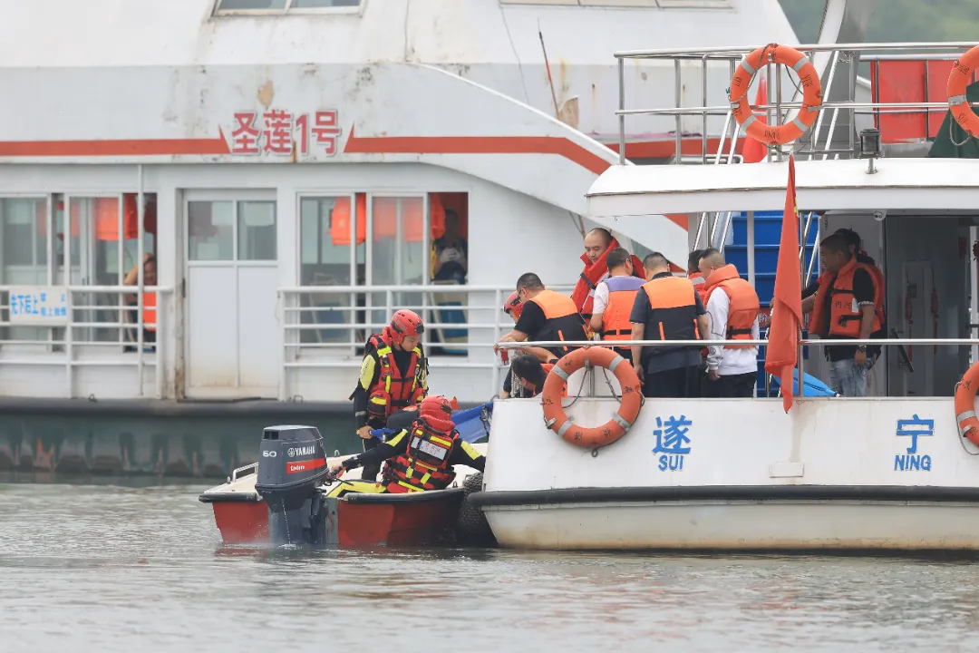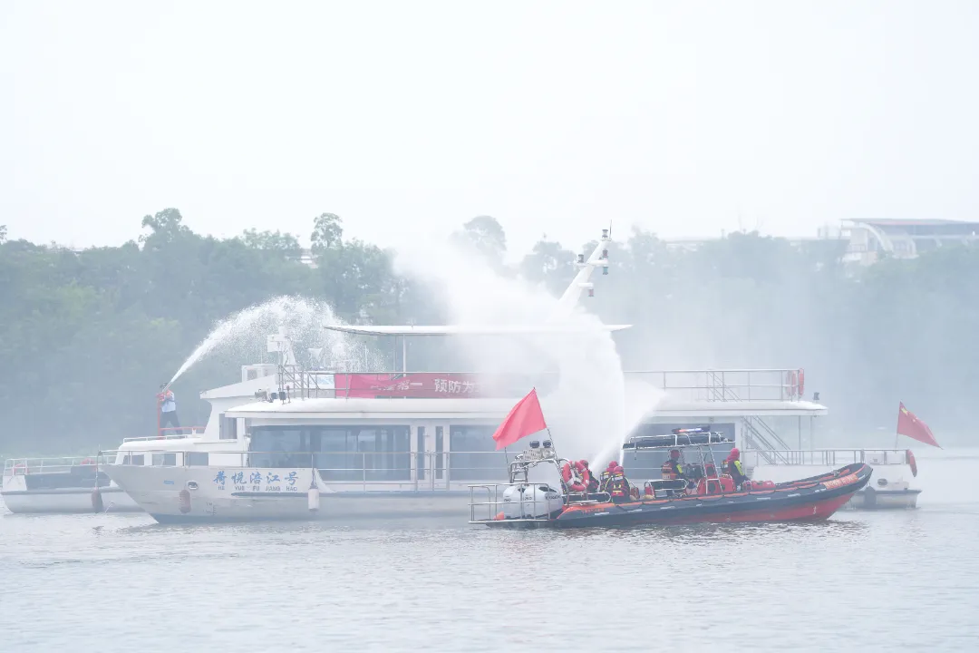 演练以汛期暴雨突袭遂宁,涪江水位上涨、涪江流域水流加速为主背景,模拟观音湖一艘环岛游轮在运行过程中突然失控失去动力,撞向旁边另一艘在航渡船,其间,一名乘客突发疾病晕倒,一艘船舶失火、燃油泄漏。险情发生后,船山区人民政府立即成立现场应急指挥部,组织交通、应急、海事、民兵等力量开展救援,排除现场船舶险情、转移患病乘客、控制扑灭船舶的火势、完成水域污染控制与清除等工作。