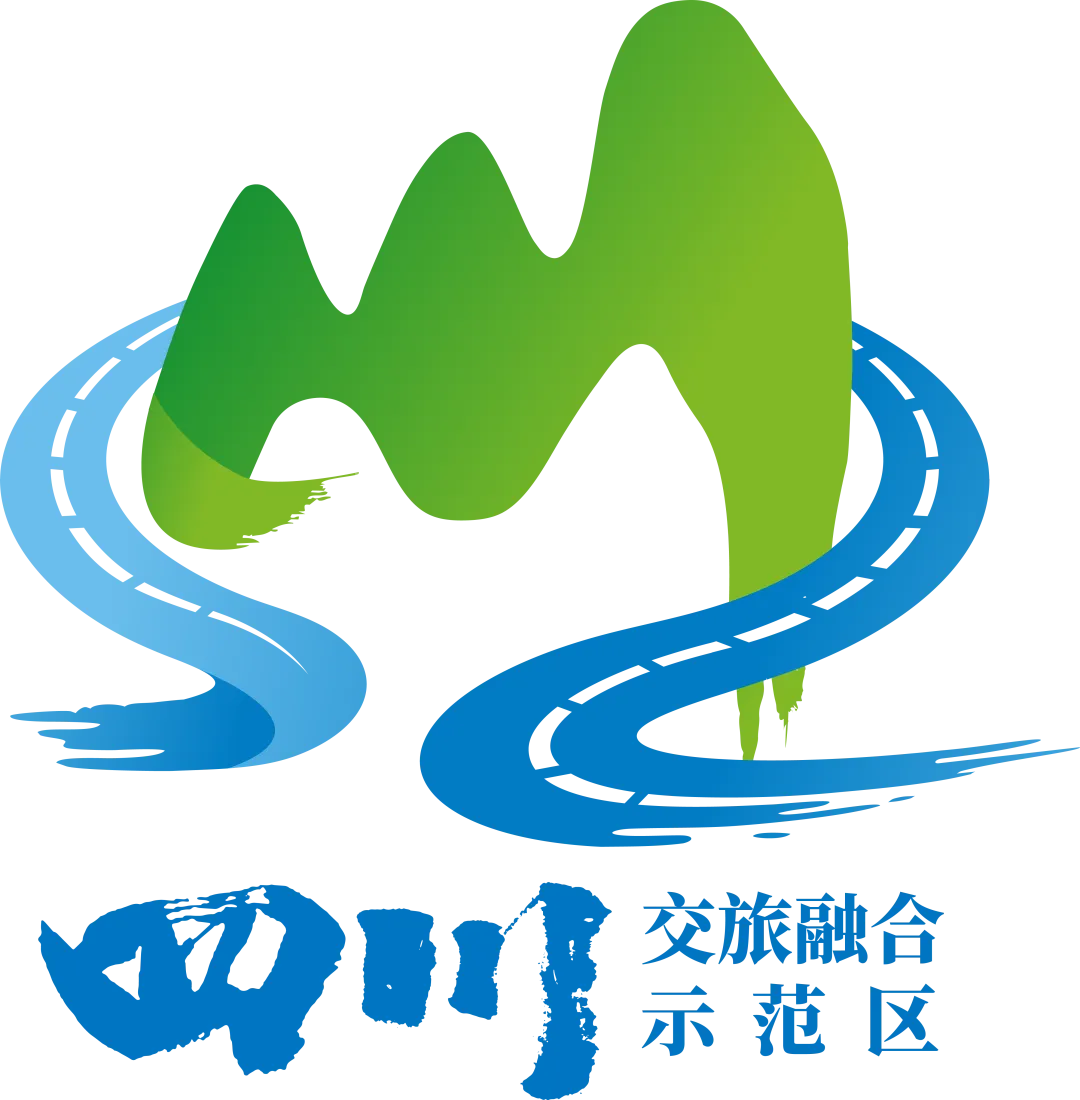 四川交旅融合示范区LOGO在元素上采用代表交通的“蓝色公路”和代表文旅资源的“绿水青山”,造型上“公路”环“山”且向左右两个方向展开,既展现公路成环成带服务支撑文化旅游行业,也寓意全省交通与旅游紧密联结、不断开放发展之意;LOGO整体形似“四川”二字,主题鲜明直观,让人容易识别和记忆。在此总LOGO基础上,通过融入不同文旅品牌特色元素,衍生出“3”个交旅融合品牌LOGO。