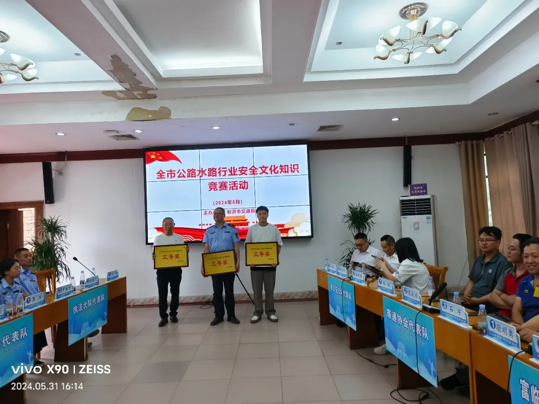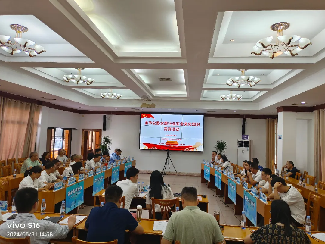 交运快讯 为深入贯彻落实习近平总书记关于安全生产的重要指示精神,进一步推进安全文化生产知识学习,增强行业管理人员和从业人员安全防范意识,凝聚弘扬安全发展理念,夯实安全文化基础,形成人人讲安全、学安全、懂安全良好氛围。5月31日,射洪市交通运输局组织开展全市公路水路行业安全文化知识竞赛活动,竞赛题目重点突出习近平总书记关于安全生产重要论述、安全生产法律法规、安全应急常识以及消防安全知识等内容。通过前期动员部署、周密筹备和层层选拔,共有8支代表队参加竞赛。 活动设置个人必答题、小组必答题和抢答题三个环节,现场气氛热烈,各个代表队队员沉着冷静,配合默契,凭借丰富的知识储备和过硬的能力素质,上演了一场精彩纷呈的安全生产知识大比拼,充分展现出了交通人昂扬向上、奋勇争先、团结协作的精神面貌。 经过激烈角逐,最终市地方海事处代表队最终荣获一等奖,富临射洪公司代表队、市公交公司代表队获得二等奖,执法大队代表队、运管所代表队、市交投公司代表队获得三等奖。
