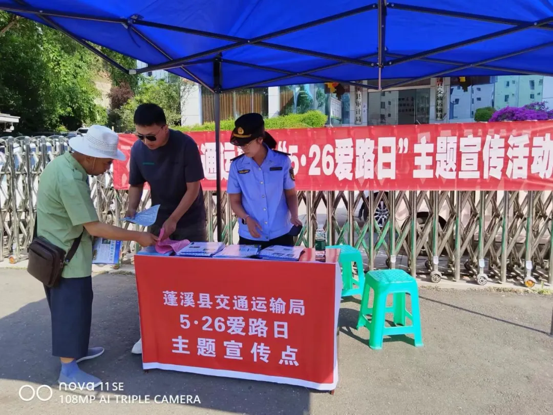 5月26日,蓬溪县交通运输局组织局机关相关股室、局属各单位及运输企业在全县开展“5.26”爱路日宣传活动,进一步提高广大市民爱路护路意识,共同营造“人民公路人民爱,人民公路人民护”的良好氛围,确保道路运输安全。