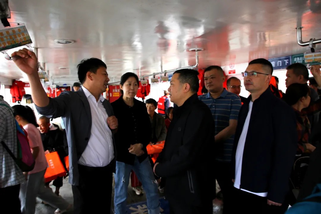 在沙坝码头,检查组一行详细了解了船舶运营、安全设施配备以及现场指挥官制度落实情况、应急预案落实情况。随后,检查组登上船舶,检查救生衣、灭火器等救生消防设备的配备与完好程度,要求工作人员务必严格落实水上交通安全制度,加强对船舶的日常维护和检查,确保船舶适航,船员要严格遵守操作规程,遇到恶劣天气及时采取应对措施,保障水上出行安全。