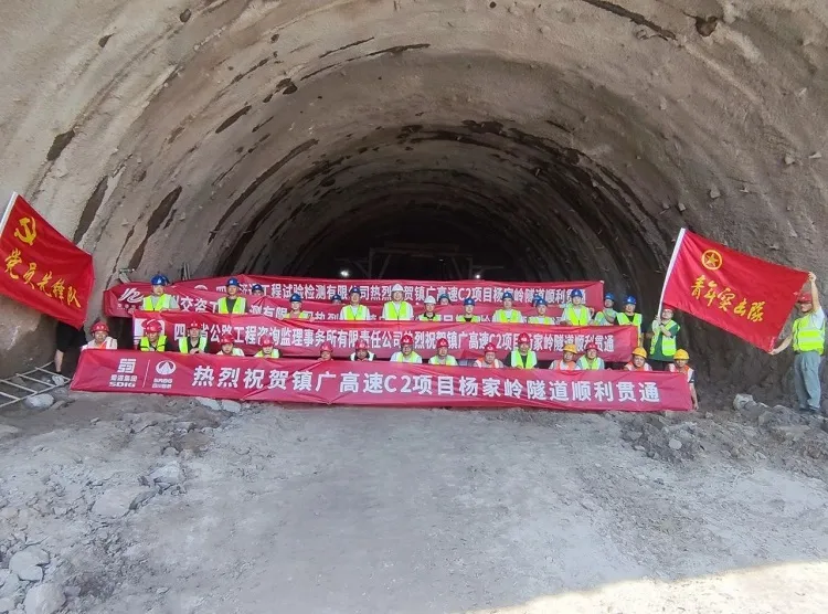 ● 镇广高速C2项目杨家岭隧道左洞顺利贯通。该隧道左洞全长753米,为微瓦斯隧道。隧道洞身最大埋深71.5米,围岩由粉砂质泥岩、砂岩组成,属软岩至较软岩,需要克服隧道进出口小净距、整体埋深浅、洞顶地表周围有建筑物、非煤层微瓦斯隧道和场地狭窄等施工困难。