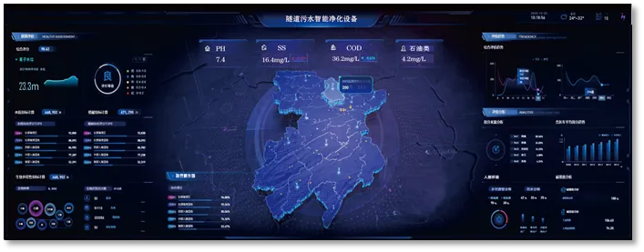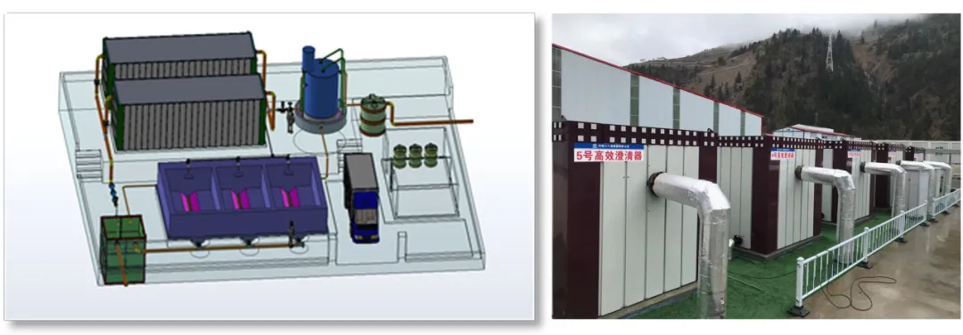 隧道施工废水智能净化系统创新结构设计,核心处理模块实现一体化装配式安装,节省占地,便捷施工;运用水平管高效沉淀技术,嵌入感应式智能加药系统、智能调度系统,可有效应对隧道施工突发涌水导致的水质水量巨变所引起的冲击负荷,提升净化安全系数和运营效率,大幅降低运营成本。