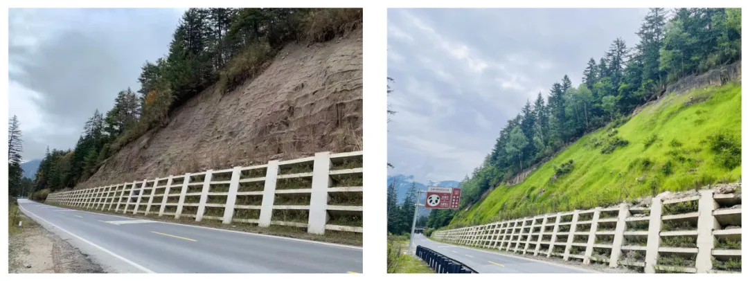 该项技术基于植被混凝土喷播技术、抗侵蚀无土混合纤维喷播技术、高次团粒喷播技术等前沿生态修复技术进行研发,是一种能够广泛应用于各种恶劣气候及地质环境条件的生态防护技术,尤其特别适用于高原山区公路高陡边坡的生态防护与修复工程。