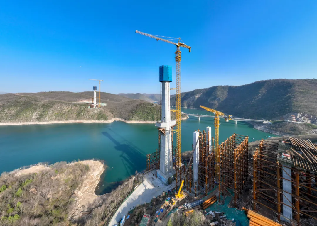 南阳市渑淅高速淅川至豫鄂省界段项目控制性工程丹江小三峡特大桥南主塔首节钢筋部品成功吊装,大桥主塔进入等截面塔柱施工阶段。该桥是国内跨径最大的跨峡谷分离式混合梁斜拉桥,也是河南省第一大跨径斜拉桥,全长919米,主跨536米,南主塔高206米,北主塔高155米。