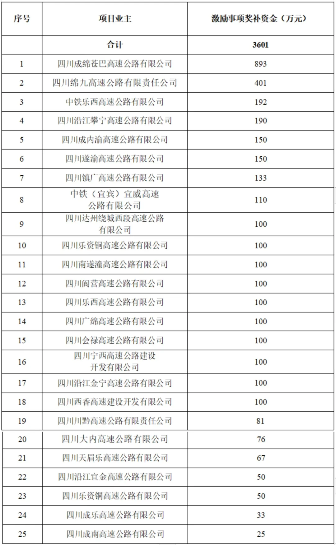 为加快构建高质量的综合交通网络体系,拉动有效投资,推动交通运输经济持续向好,厅依据《2023年交通建设抓项目促投资稳增长若干激励政策》,安排省级交通专项资金31077万元,兑现了2023年交通建设抓项目促投资稳增长激励资金。本次获得资金激励的有25个高速公路和重点水运项目业主,涉及32个高速公路和2个重点水运项目,以及20个市(州)、30个县(市、区)。此项激励已连续实施了2年,累计安排奖补资金超7亿元。