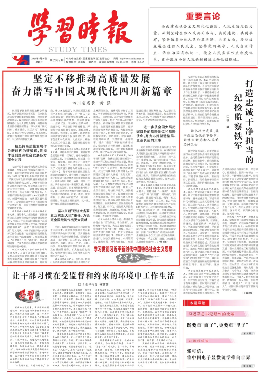 4月10日,四川省省长黄强在学习时报发表题为《坚定不移推动高质量发展 奋力谱写中国式现代化四川新篇章》的署名文章。