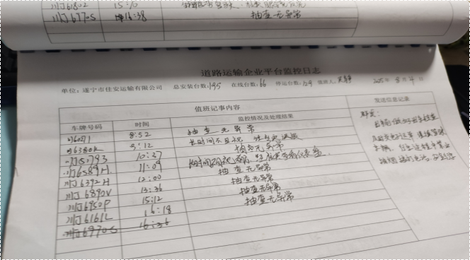 发现GPS监控系统显示的违规信息、GPS动态监控日志记录和严肃处理记录多处不一致。