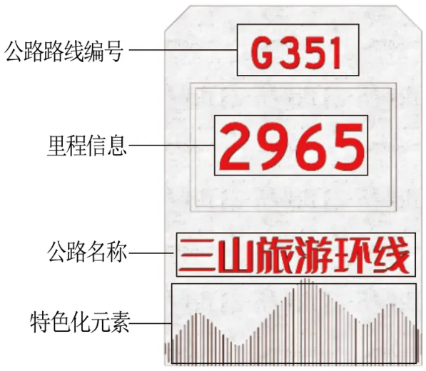 (3)特色里程标识:特色化设计的公路里程标识,提供所在公路的编号及里程桩号,提升公路旅游氛围。