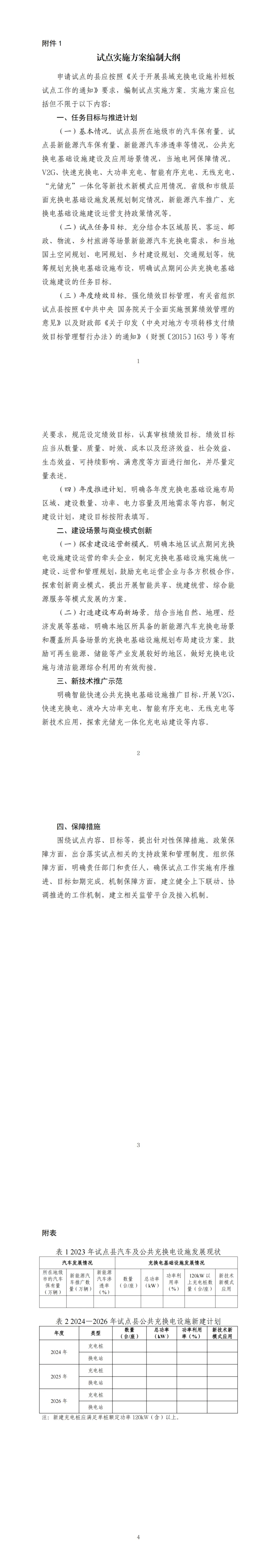 (一)申报主体。申报试点的主体应为新能源汽车推广应用场景丰富、公共充换电基础设施建设相对薄弱、地方推广应用积极性高、社会资本投资意愿较弱的县(不含市辖区)。重点挖掘应用场景,编制试点申报实施方案(编制大纲见附件1)。
