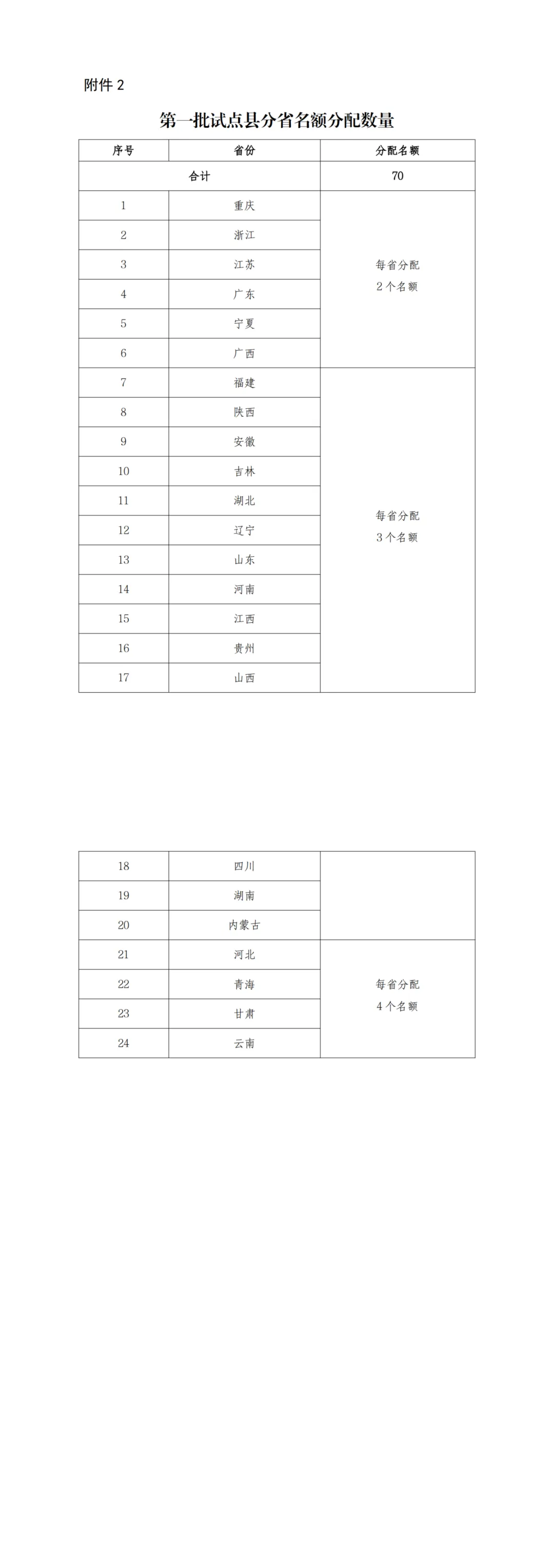 (三)名额分配。2024—2026年,三部门根据地方当前新能源汽车和公共充换电基础设施发展状况及未来潜力、地域面积、省内县(县级市)数量、当前财力状况等因素分配省级试点县名额(见附件2)。