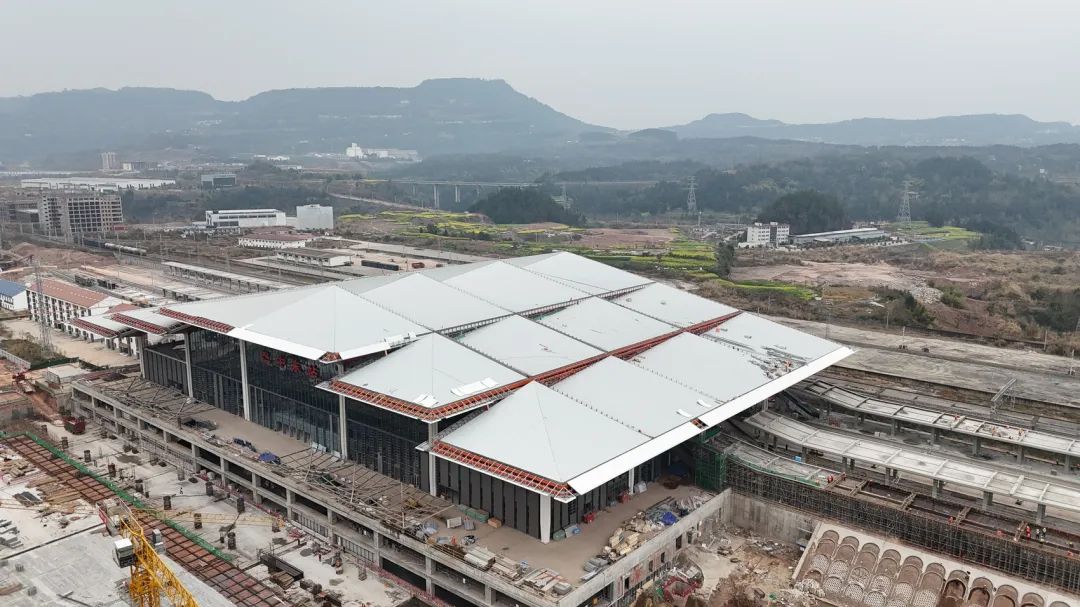 ▲建设中的巴中东站。(汉巴南铁路公司供图)