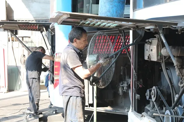 “检修人员早上8点上班,晚上9点半下班。维修车间需保证通风和安全,无法安装空调,车辆在检修期间需要熄火,他们的作业环境又闷又热。”遂宁发展公共交通有限公司修理厂厂长许胜中告诉记者,为保障员工身体健康,修理厂在现场配备了风扇,不仅能给发动机降温,也给修理工在维修时散热。同时,修理厂还配备了防暑降温药品。