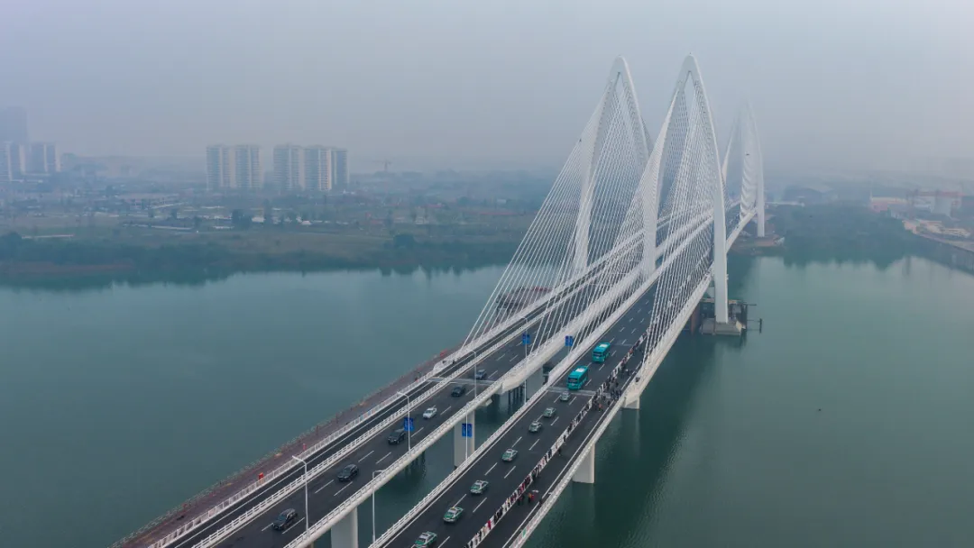 仪式开始前,严卫东、王忠诚一行还实地察看了遂宁涪江六桥项目建设情况,听取遂宁涪江六桥畅通城市交通“动脉”、完善城市骨架路网等情况汇报。据悉,遂宁涪江六桥是全国首座复杂曲线荷花瓣形钢混组合索塔斜拉桥,设计既有结构技术创新,又有重在写意、务求写实的艺术境界。大桥也是遂宁首座双塔五跨混凝土梁斜拉桥,主跨338米,总长3.215公里,设计时速60公里,双向六车道,配套非机动车道及人行道。涪江六桥通车后将缓解通德大桥、通善大桥及观音湖隧道的过江压力,促进区域协调发展,助力成渝地区双城经济圈建设。