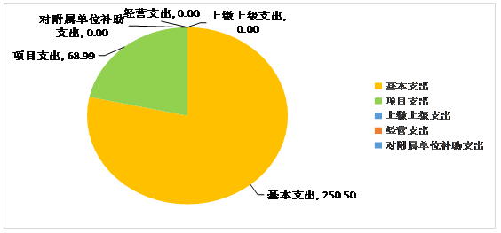 2020年本年支出合计319.49万元,其中:基本支出250.50万元,占78.41%;项目支出68.99万元,占21.59%;上缴上级支出0.00万元,占0.00%;经营支出0.00万元,占0.00%;对附属单位补助支出0.00万元,占0.00%