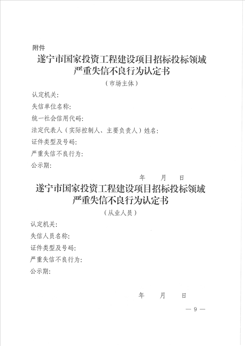 关于印发《遂宁市国家投资工程建设项目 招标投标领域严重失信“黑名单” 管理办法(试行)》的通知(遂发改发〔2020〕42号)