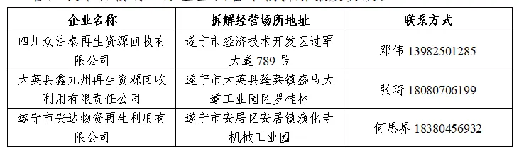 答:我市目前有三家企业具备车辆拆解报废资质。