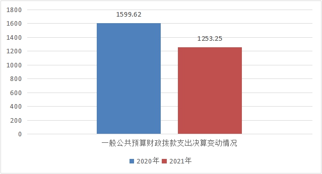 2021年一般公共预算财政拨款支出1253.25万元,占本年支出合计的6.28%。与2020年相比,一般公共预算财政拨款支出减少346.37万元,下降21.65%。主要变动原因是上年财政拨款结转的项目减少。