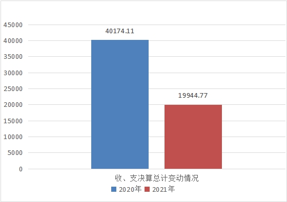 2021年度收、支总计19944.77万元。与2020年相比,收、支总计减少20229.34万元,下降50.35%。主要变动原因是实有资金账户结转的上级补助资金减少。
