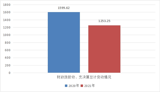 2021年财政拨款收、支总计1253.25万元。与2020年相比,财政拨款收、支总计各减少346.37万元,下降21.65%。主要变动原因是上年财政拨款结转的项目减少。