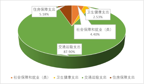 2021年一般公共预算财政拨款支出2914.57万元,主要用于以下方面:社会保障和就业(类)支出128.16万元,占4.40%;卫生健康支出73.64万元,占2.53%;交通运输支出2561.80万元,占87.90%;住房保障支出150.97万元,占5.18%。