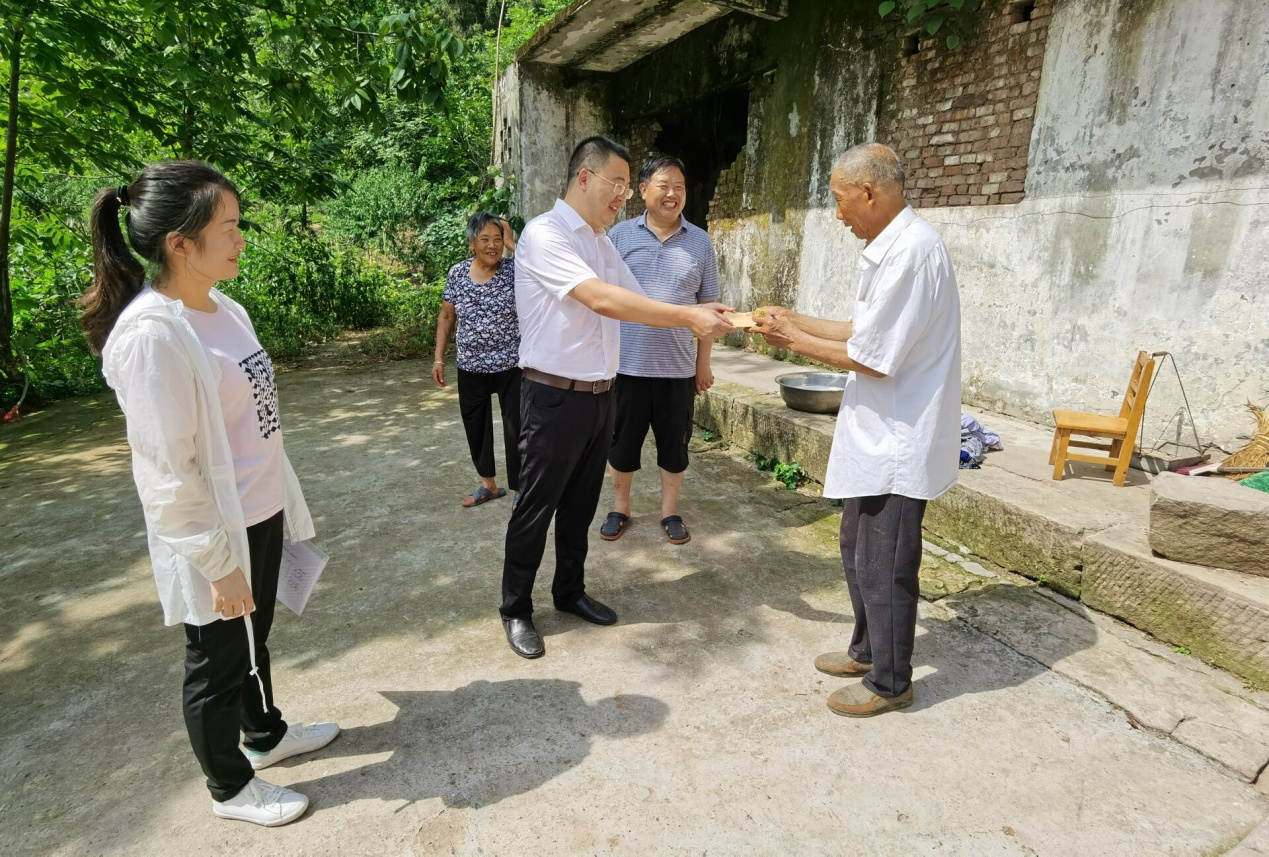 声声问候温暖人心,句句嘱托传递真情。为庆祝中国共产党成立99周年,弘扬党的光荣传统和优良作风,充分体现党组织对党员的关心和爱护。"七一"前夕,遂宁市农业农村局党组成员、机关党委书记彭瀚霖同志率队前往射洪市沱牌镇桃花村,走访慰问困难党员,看望局驻村帮扶干部,为他们送去党组织的温暖关怀和祝福。