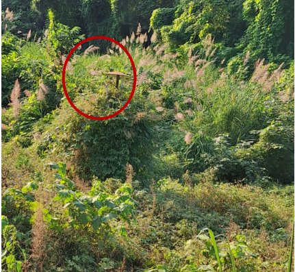 沼气火炬被周边藤草树枝包裹覆盖,存在火灾隐患。
