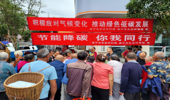 7月14日,为积极营造节能降碳浓厚氛围,市农业农村局、市生态环境局、安居区农业农村局在安居区三家镇联合举办以“节能降碳,你我同行”“积极应对气候变化,推动绿色低碳发展”为主题的宣讲活动,旨在推进习近平生态文明思想进农村,推广农业绿色低碳生产技术,推动形成绿色低碳的生产生活方式,提高广大农户环保意识,进一步提升农村生态环境质量。