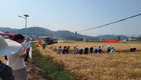 5月20日,全国农业技术推广服务中心、四川省植保学会等单位在安居试验田召开四川省小麦提质增产现场观摩交流会。全国农业技术推广服务中心正高级农艺师李永平等8名国省级专家,全省38个市、县(市、区)植保站负责人参加,实地观摩“芸乐收”在小麦种植中的示范效果。本次示范选取处理区1.99亩和对照区1.93亩进行对比试验。现场可见,处理区小麦色泽金黄均匀,麦穗长而饱满,籽粒结实度优于对照区。在全国农业技术推广服务中心正高级农艺师李永平、原农业农村部种植业管理司一级巡视员陈友权、原农业农村部农业司副司长孙小平、中国农科院植保所研究员袁会珠、原四川省农科院副院长刘建军、四川省植保学会会长刘勇、四川省植保站防治科科长徐翔等专家的见证下,工作人员开展实收测产。处理区折干产达899.7斤/亩,较对照区亩增产213.8斤,增产率31.2%。与会专家充分肯定“芸乐收”对小麦产量和品质的双重提升作用,认为其具有重要的推广价值。