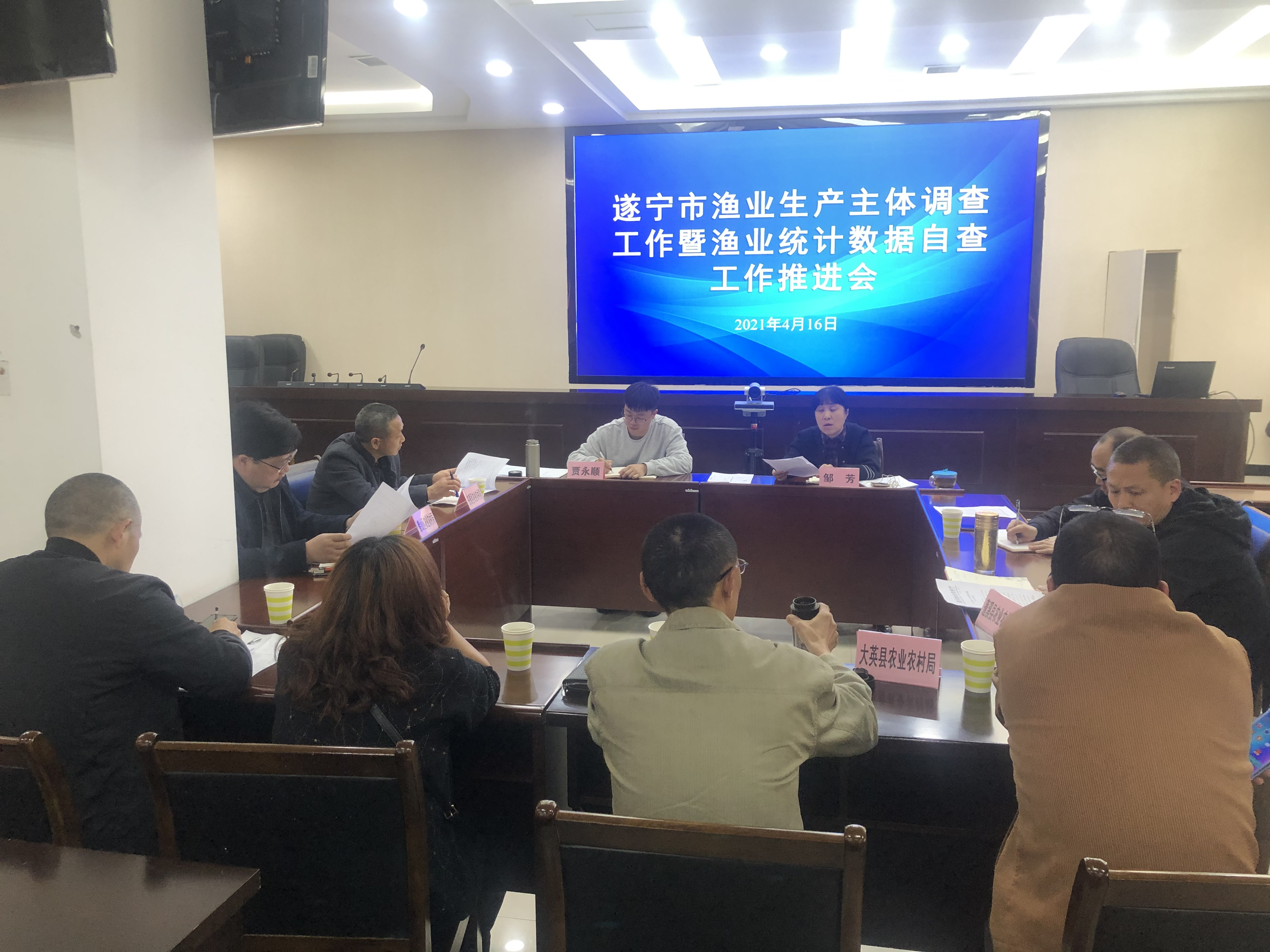 4月16日,遂宁市农业农村局组织召开全市渔业生产主体调查暨渔业统计数据自查工作推进会,会议由市农业农村局水产站主持,各县(市、区)水产(渔政)部门负责同志和具体经办人员参加。